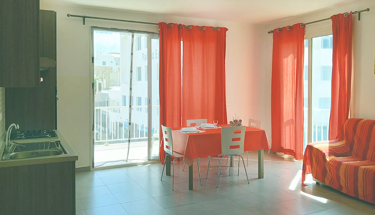 Apartment terletak di tingkat dua bangunan Ia terdiri daripada: - Bilik tidur double King Size - Bilik mandi persendirian dengan pancuran mandi - Dapur penuh - Tuala - Meja makan - Sofa - TV - Wifi - Air Panas - Teres - Kipas Apartmen ini menghadap teres besar, sesuai untuk menikmati udara laut dan matahari terbenam yang menakjubkan yang ditawarkan oleh pulau ini. Anda boleh menikmati aperitif buatan sendiri yang lazat dengan produk tempatan biasa.