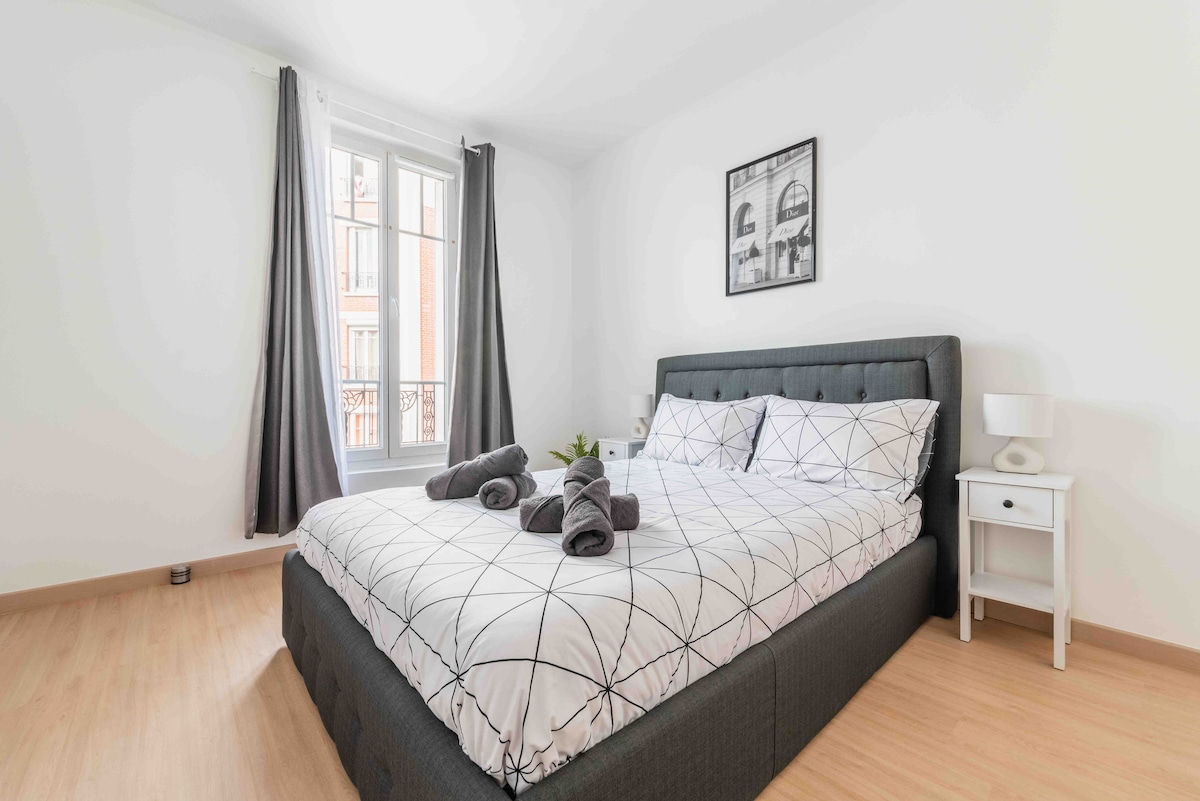 Nikmati keanggunan dan keselesaan apartmen Gaya Art Deco Paris hanya beberapa minit berjalan kaki ke metro, terus Champs Elysées dan banyak lagi. Tempat yang ideal untuk orang yang sukakan reka bentuk dan gaya dan sedang mencari harga yang lebih berpatutan di bangunan tahun 1900-an. Ciri-ciri utama * Katil queen yang selesa * Dapur serba lengkap * 9 minit berjalan kaki Métro ligne (13) terus Champs Elysées, dan+ * Pasar raya di seberang jalan. Kedai roti, farmasi, dan + * Stesen basikal 400m *SmartTv dengan Netflix dan +