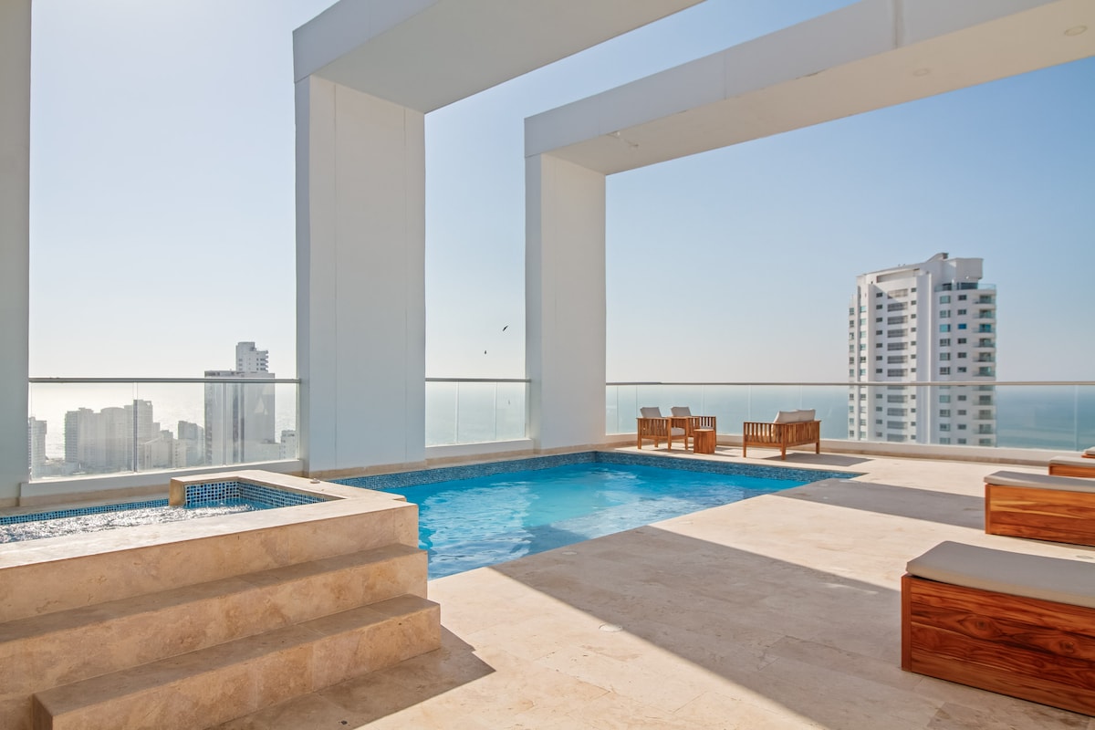 Duplex dengan Pemandangan & Kolam Renang / Bocagrande / Pantai