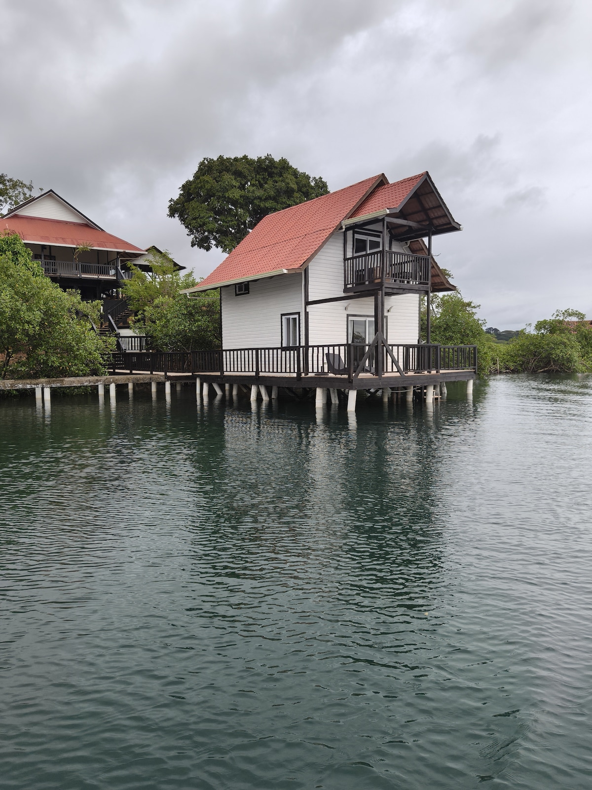 Datang dan nikmati pengalaman unik, di Ecolodge kami di atas tiang, anda akan mengalami momen impian di teluk Punta Caracol, sebuah tempat yang indah di antara langit dan laut. EcoBungalow kami 4-5 orang, menawarkan dua bilik tidur dengan katil saiz King, dua bilik mandi, dapur yang lengkap, kawasan lounge berubah menjadi kawasan tidur ketiga. 15 minit menaiki bot dari pusat Bocas, 10 minit menaiki bot dari Playa Estrella, anda boleh menikmati khazanah kepulauan ini dengan mudah.
