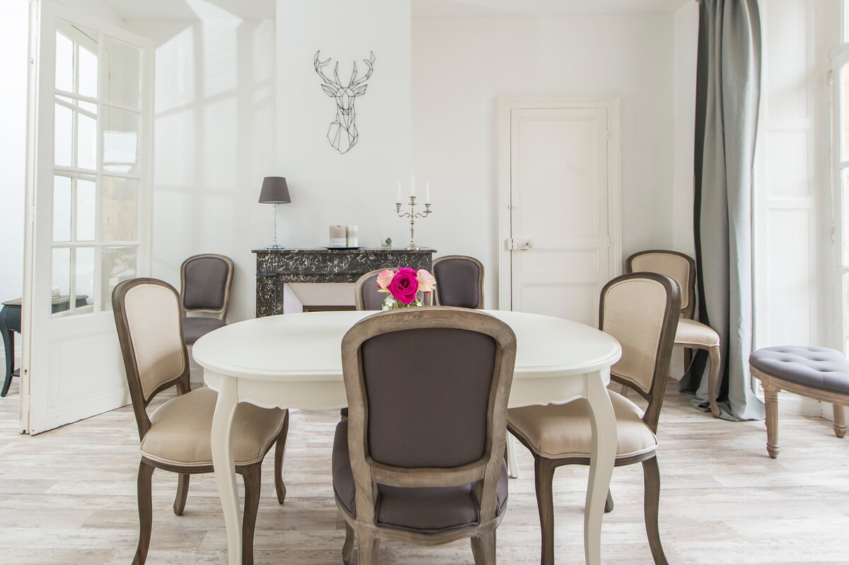 Hentian ducal adalah penginapan yang indah di tengah-tengah Charleville-Mézières hanya 200m dan 3 minit dari dataran ducal! Terletak di belakang halaman, percutian yang damai ini menawarkan pengalaman unik yang menggabungkan pesona tulen dan keselesaan moden. Rumah kami, diubahsuai sepenuhnya, menonjol kerana ciri-ciri tulen dan kecerahannya yang luar biasa. Setiap perincian telah difikirkan dengan teliti untuk menyediakan persekitaran hidup yang menyenangkan dan menenangkan.