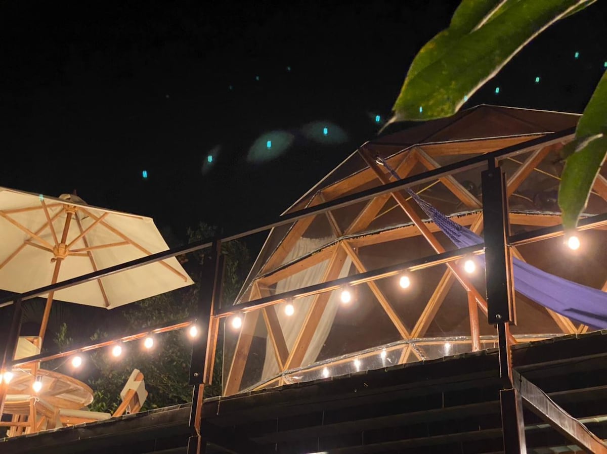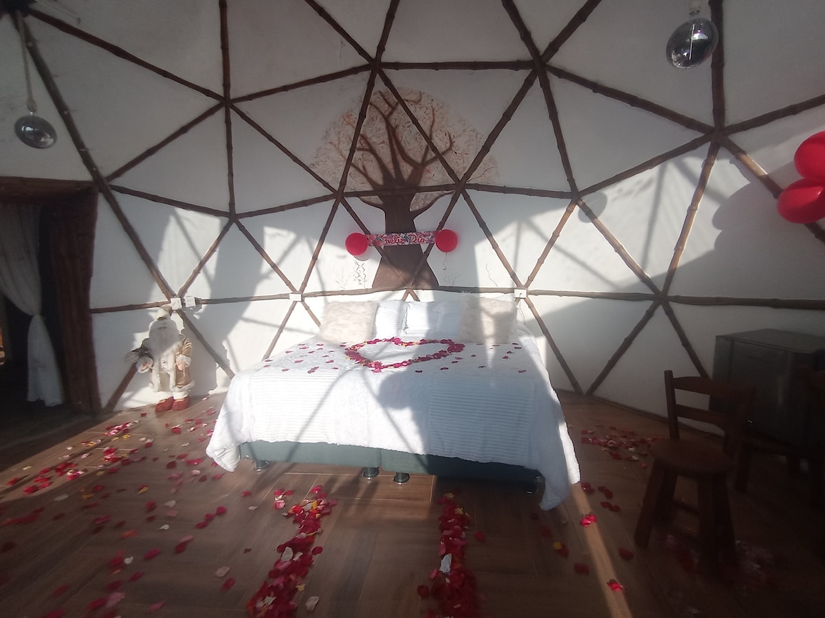 Selamat datang ke Nuarglamping 🏕️ Nikmati suasana mempesonakan tempat romantik ini dalam alam semula jadi. Ini adalah suasana mesra alam terbaik yang digabungkan dengan glamor dan perkhemahan. PENGALAMAN NUAR Termasuk: - Penginapan domo geodesik.🏕️ - Bilik mandi persendirian dengan air panas. -Parqueadero.🅿️ - Sarapan.🥞🍳 - Jacuzzi🛀🧖 - Kawasan unggun api.(masmelos)🔥 -Di luar.🎥🎥 - Perkhidmatan bilik. -Mini Granja🐖🐔🐣 - Kawasan Baq - Kawasan buaian rajut. -Columpio untuk gambar.