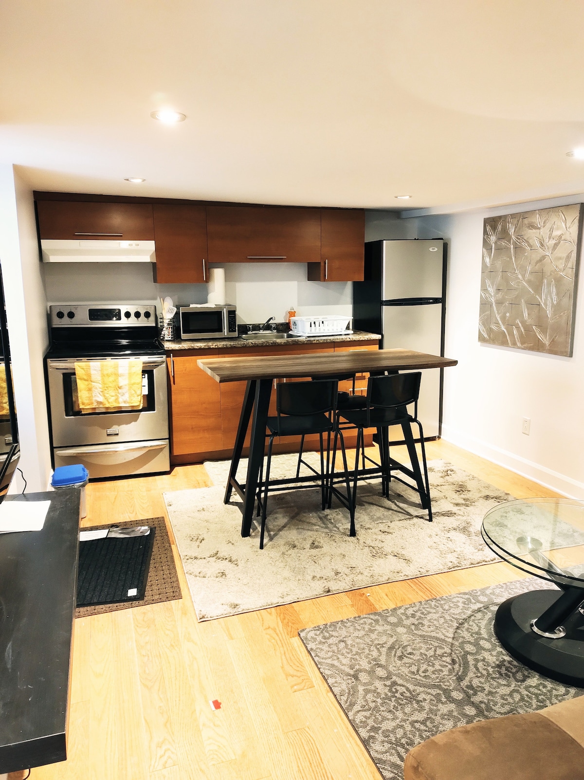 Studio sub-tingkat kecil yang selesa, sesuai untuk satu atau dua orang. Terletak di kawasan yang tenang dan mempunyai sambungan yang baik, 3-5 minit berjalan kaki dari metro Cartier (laluan oren), dengan akses terus ke pusat bandar Montreal dalam masa 20–25 minit. Lapangan Terbang Montreal–Trudeau (YUL) terletak sejauh 25–30 minit memandu. Termasuk Wi-Fi, dapur lengkap, bilik mandi persendirian, mesin basuh/pengering dan TV pintar. Sijil CITQ No. 304968.