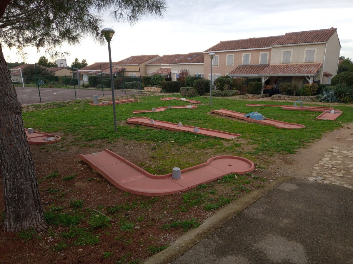 Di kediaman percutian yang meriah pada bulan Julai/Ogos dan aman sepanjang tahun. Rumah 34m2 berperabot. 25 minit dari laut dan terletak di antara Nîmes dan Montpellier. Direka agar anda tidak terlepas apa-apa. Beberapa gelanggang petanque, tenis, kolam renang termasuk 1 gelanggang tertutup dan dipanaskan sepanjang tahun. Tempat yang indah untuk diterokai, perubahan pemandangan pada harga yang menarik. sesuai untuk percutian atau perjalanan perniagaan anda. Dobi di lokasi.