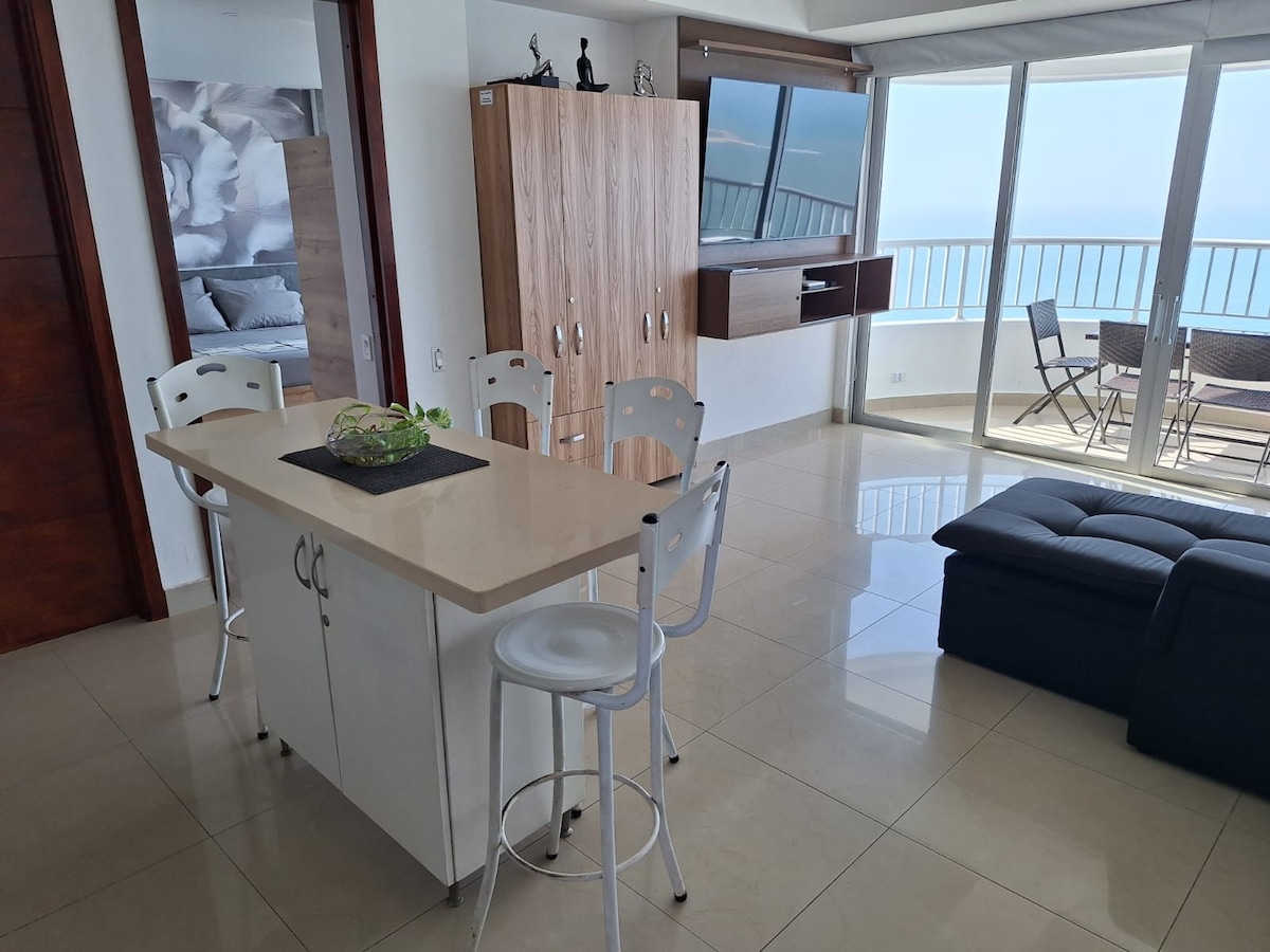 Nikmati apartmen tepi laut yang elegan di Bocagrande, dengan pemandangan langsung Caribbean. Ia mempunyai 2 bilik tidur, 2 bilik mandi, ruang tamu besar dengan katil sofa, dapur lengkap, WiFi berkelajuan tinggi dan balkoni persendirian dengan kerusi gantung. A/C di semua kawasan. Sesuai untuk keluarga dan kumpulan yang mencari keselesaan, lokasi utama dan akses pantai segera. Semuanya direka untuk penginapan yang moden, praktikal dan santai.