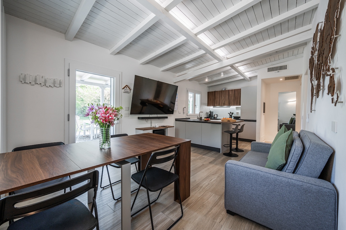 Rumah yang sangat terang, dengan rasuk terdedah, perabot baru, pemanas bawah lantai dan taman persendirian berperabot seluas 60 meter persegi. Tempat letak kereta yang dilindungi dan percuma, di dalam taman, berpagar sepenuhnya. Annabella's Garden terletak 1.5 km dari pusat bandar, di kawasan yang sangat tenang dihidangkan dengan setiap keselesaan. Kami dengan sukacita akan mengalu-alukan anda secara peribadi (dalam bahasa Itali, Inggeris dan Perancis) dan memberikan anda semua maklumat yang anda perlukan.