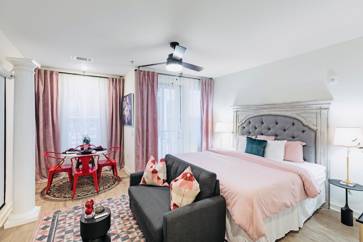 Apartmen satu bilik tidur satu bilik mandi yang bergaya dan luas ini terletak di tengah-tengah bandar, namun terletak dengan senyap berhampiran sungai. Bilik ini mempunyai katil king dengan hiasan yang cantik dan subsewa. Ia menyeronokkan dengan televisyen 75 inci untuk berehat pada waktu malam di ruang tamu yang selesa, mesin bertih jagung segar, Nintendo Switch, dan dapur yang lengkap. Ia dalam jarak berjalan kaki ke restoran dan bar dan beberapa minit dari VCU, James River, Carytown dan kebanyakan Richmond.