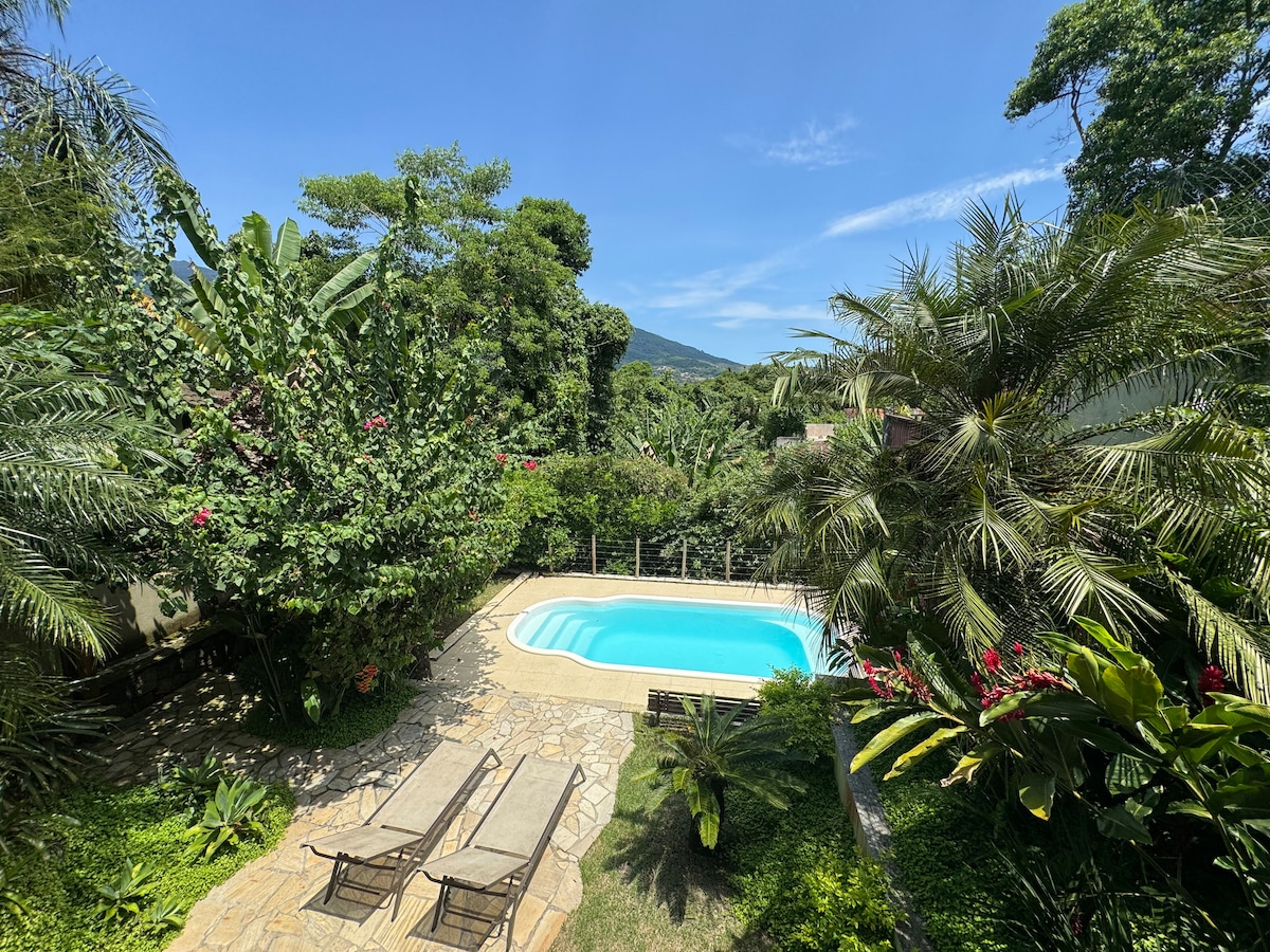 Casa (120m2) no antigo parque aquático de Ilhabela c/ 2 suítes, cozinha completa, WiFi rápido (Fibra óptica 1000Mbps), área c/ próprio quintal c/ churrasqueira e piscina natural de uso exclusivo de quem aluga esta casa! No segundo andar tem a suíte c/ vista p/ estrelas da cama king e da banheira e varanda. A ampla varanda c/ mesa de sinuca e rede leva para uma ponte até o mirante das cachoeiras. Localização bem central, perto das praias, tanto pro sul, Vila, norte ou outro lado da ilha.