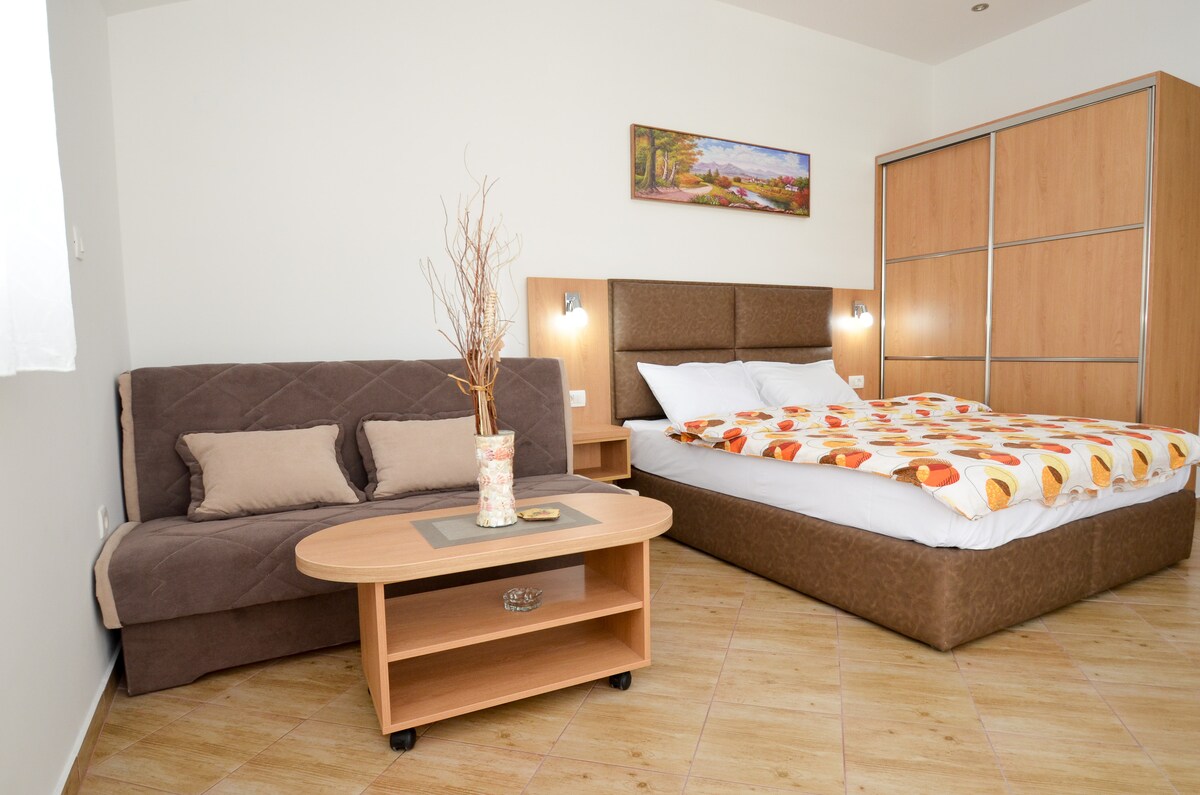Selamat datang ke hotel kecil kami yang menawan yang terletak di tengah-tengah Budva, permata tersembunyi di bandar tepi laut yang memukau ini. Penginapan selesa kami menampilkan kemudahan moden sambil mengekalkan suasana yang hangat dan selesa. Terokai jalan-jalan yang indah di bandar lama, dengan sejarahnya yang kaya, semuanya dalam jarak berjalan kaki. Sama ada anda berada di sini untuk percutian romantik, percutian keluarga, atau pengembaraan solo, apartmen kami adalah tempat yang sesuai untuk meneroka garis pantai dan khazanah budaya Budva yang indah.