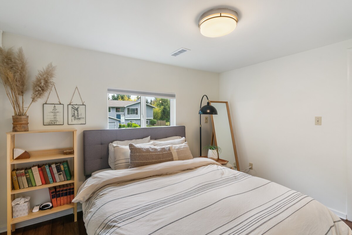 This cozy 3-bedroom home, beautifully designed and furnished for couples, groups, and families alike, is located in a quiet residential cul-de-sac within minutes from Main Street Bothell, McMenamins Anderson School House, and Woodinville Wine Country. Explore the PNW through nature trails and hikes, sit in a cafe, or enjoy a brew at one of the local hot spots. Downtown Seattle is a 25 minutes drive (traffic depending). We accommodate 6 people in beds plus provide a queen size air mattress.
