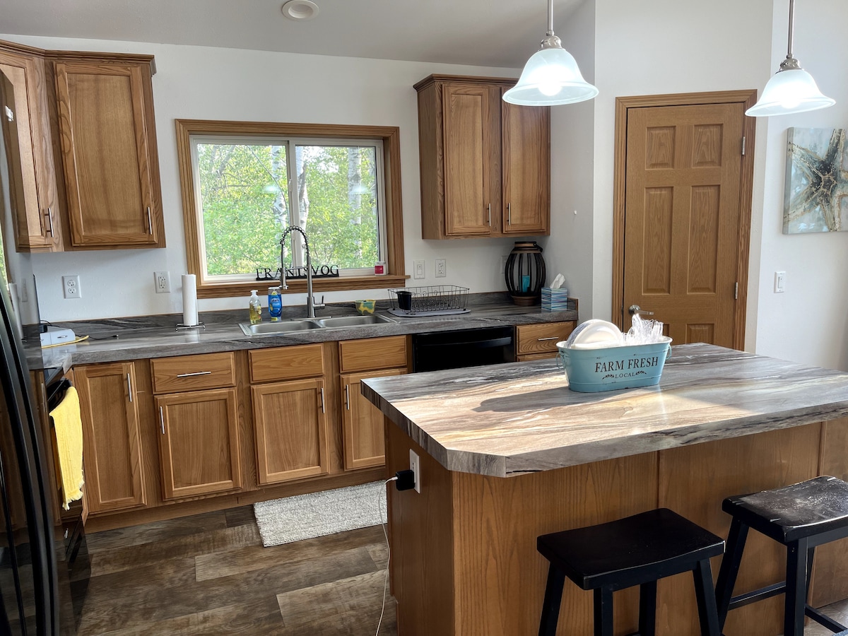 Nikmati penginapan anda di Taman Permainan 4 Musim di Taman Permainan Menawan, Selesa, Selesa & Mudah (4 C 's-onskami! ;P) Banglo 2 bilik tidur. Dengan katil king dan pilihan untuk sama ada dua kembar atau king berpecah serta katil sofa tarik keluar bersaiz penuh dan berkembar, ada ruang untuk seluruh keluarga. Anda akan berada di tengah-tengah ke kedai-kedai dan perkhidmatan tempatan dan jarak yang sama dari Pergunungan Penyu, Tasik Metigoshe, J. Clark Salyer Refuge, dan berbatu-batu kereta salji, ATV, dan laluan mendaki.