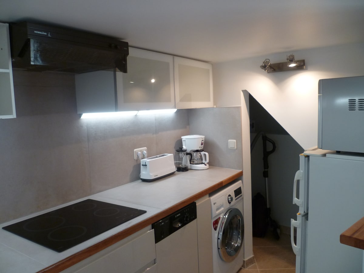 Apartmen 40 meter persegi, di dalam lampiran istana adalah satu-satunya bilik di dalam bangunan ini. Ia terdiri daripada: - Lounge/ruang makan katil sofa - Dapur berperabot lengkap dan berperabot lengkap - Bilik mandi dengan pancuran mandian walk-in, tandas gantung dan meja solek pada perabot. Di mezzanine: bilik dengan katil besar 160 x 200 cm. Di luar, di teres persendirian: meja dan kerusi. Tempat ini sangat tenang dan damai. 4 x 2.20ml SPA renang,pada kos tambahan Kolam renang percuma