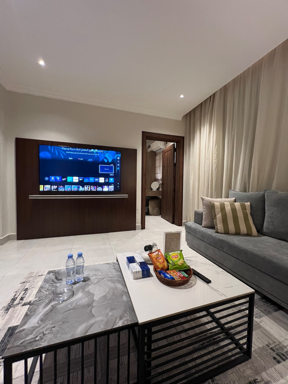 1BR moden di Hittin, salah satu lokasi utama Riyadh, beberapa minit dari Boulevard City dan kafe-kafe terbaik. Direka untuk keselesaan dan kemudahan dengan daftar masuk sendiri dan sistem pintar penuh. Menampilkan ruang tamu yang selesa, bilik tidur yang selesa, TV Pintar 85 inci dan pendiangan elektrik yang elegan untuk suasana yang santai. Dapur yang serba lengkap dengan ketuhar, ketuhar gelombang mikro, dapur elektrik, mesin basuh pinggan mangkuk dan mesin basuh. Bersih, bergaya dan sesuai untuk pasangan, pengembara perniagaan dan penginapan jangka pendek atau panjang.