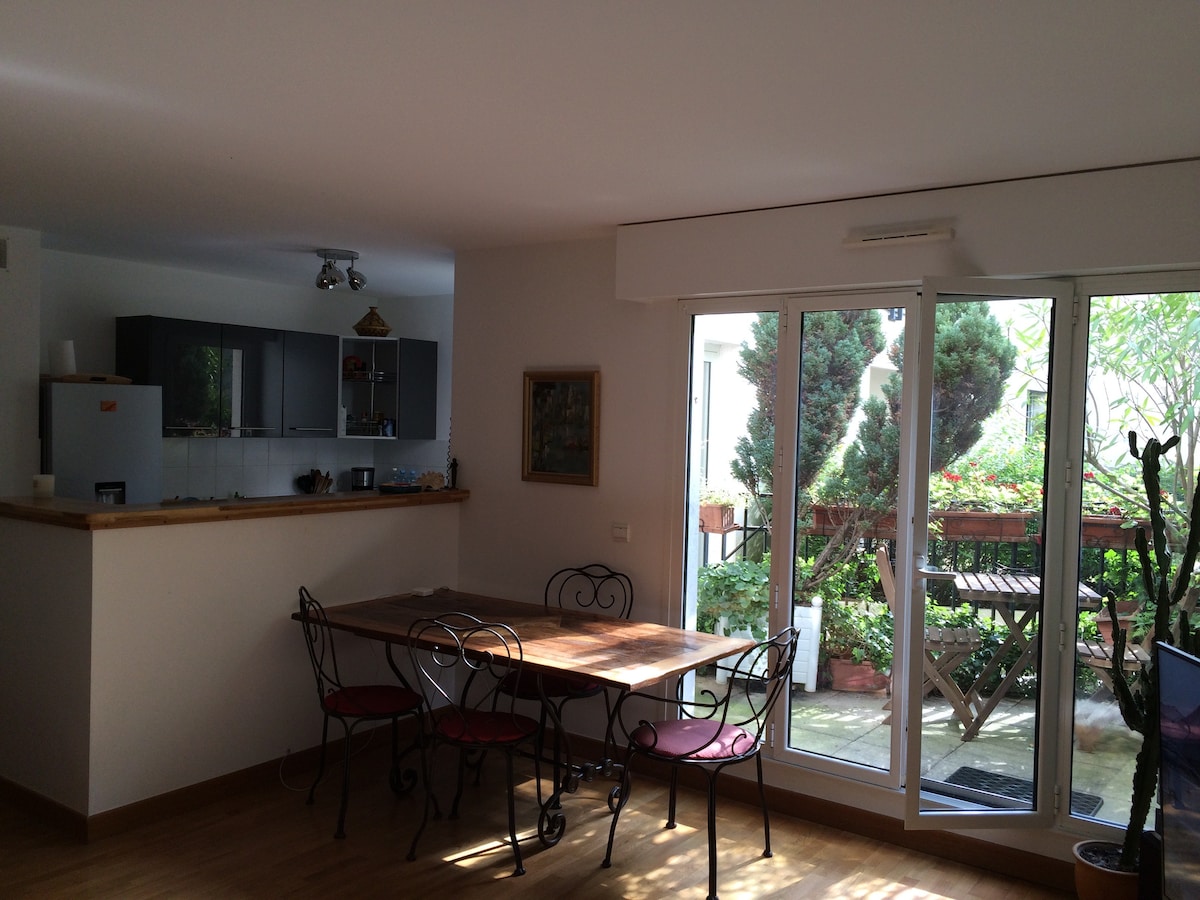 Apartmen 75m², berhampiran dengan Seine aux Portes de Paris. Sesuai untuk keluarga, pasangan, rakan-rakan atau perjalanan perniagaan. Anda akan menemui: bilik tidur dengan katil kelamin, bilik tidur dengan katil kelamin dan meja, dipisahkan daripada ruang tamu oleh sekatan Jepun, ruang tamu, kawasan dapur, beranda dengan ruang makan, bilik pancuran mandi dengan pancuran mandi, tandas berasingan dan taman. Apartmen ini dilengkapi dengan mesin Nespresso, Wi-Fi kelajuan tinggi dan banyak kemudahan.