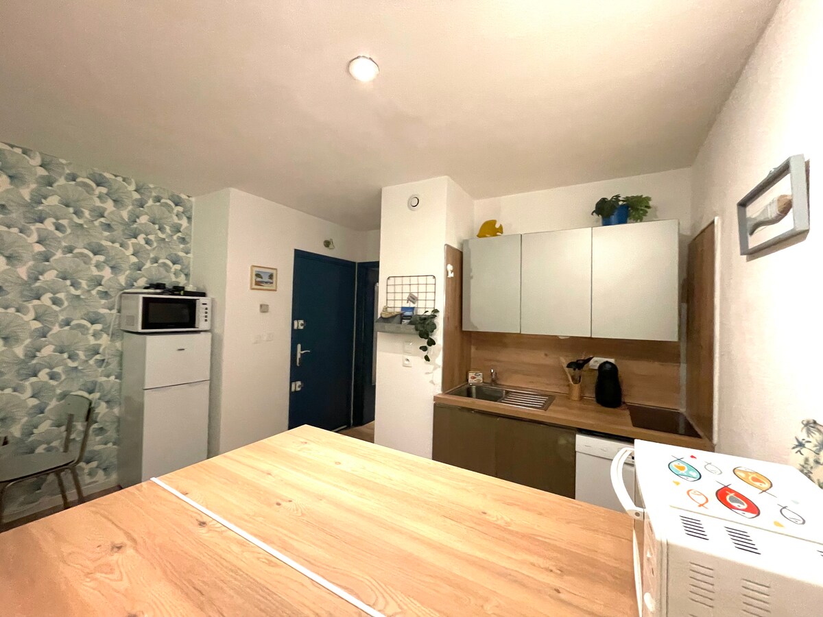 Studio seluas 30 m2 di tingkat bawah di kediaman berhutan dan selamat yang akan menggoda anda dengan ketenangan dan pesonanya. Diperbaharui pada tahun 2019, bilik mandi diubahsuai pada tahun 2023. Berhampiran dengan pantai, kedai dan stesen kereta api sncf 3 minit jauhnya. Penginapan yang serba lengkap. Ruang letak kereta. Cadar dan tuala disediakan