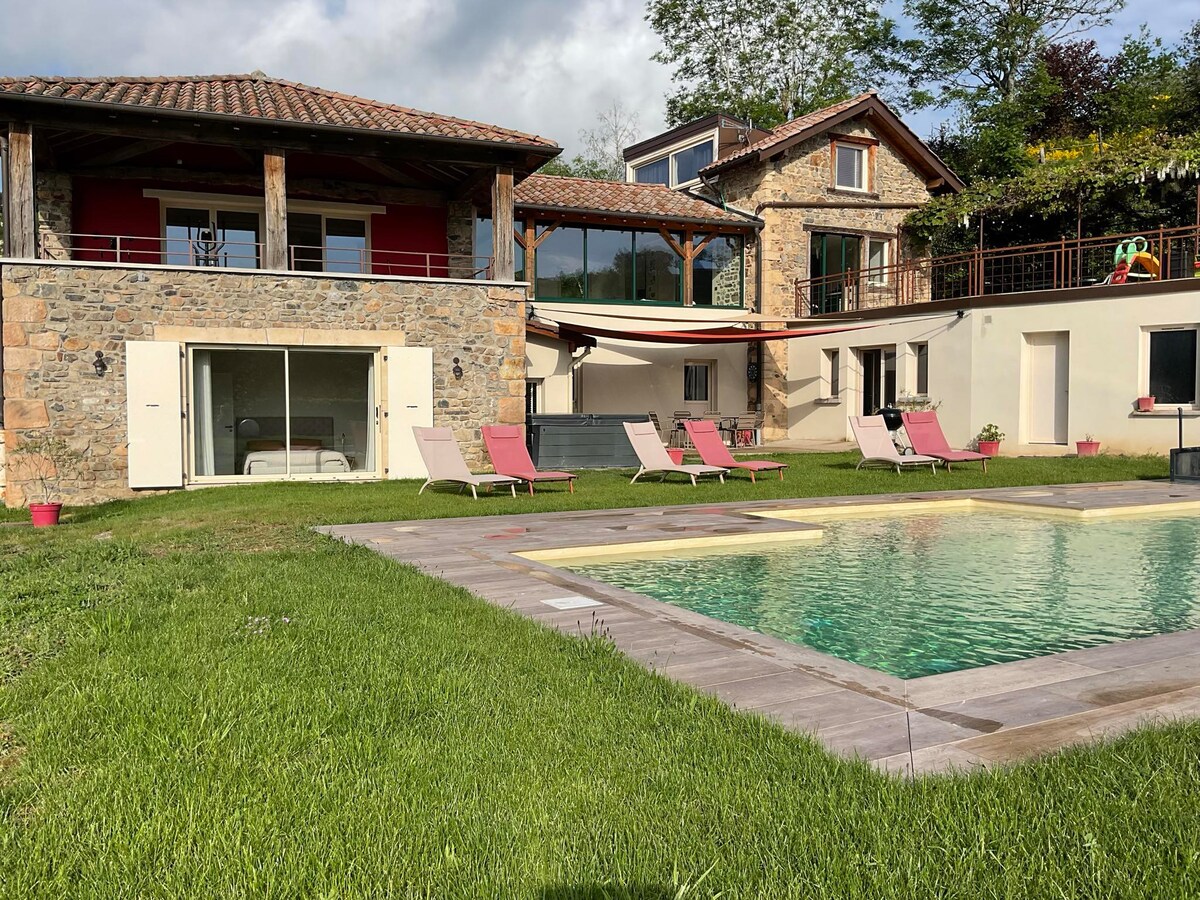 Rumah desa yang hangat dan tenang. Nikmati penginapan di kawasan hijau dengan pemandangan alam semula jadi yang tidak terhalang. Sedia membantu anda, di 2 tingkat, 2 bilik tidur dengan katil kelamin, katil sofa kelamin dan dua katil single di atas mezzanine. Akses kepada denai hiking boleh dilakukan terus dari penginapan. Datang dan isi semula bateri anda dan nikmati jarak yang dekat dengan rantau Beaujolais.
