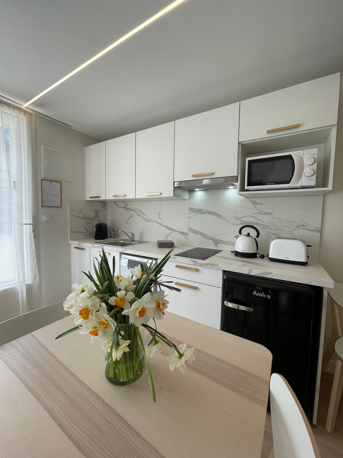 Rumah ini mempunyai pintu masuk, ruang tamu dengan TV, dapur lengkap (ketuhar, peti sejuk, dapur, ketuhar gelombang mikro, mesin basuh, cerek, pembakar roti, pembuat kopi penapis), kawasan tidur yang indah dan bilik mandi dengan tandas. Parkir tepi jalan percuma Dengan berjalan kaki, rumah ini berjarak 3 minit dari taman awam (tempat yang menerima pelbagai perayaan), tebing Charente berjarak 5 minit dan 11 minit dari Place François 1er. Stesen kereta api berjarak 5 minit memandu