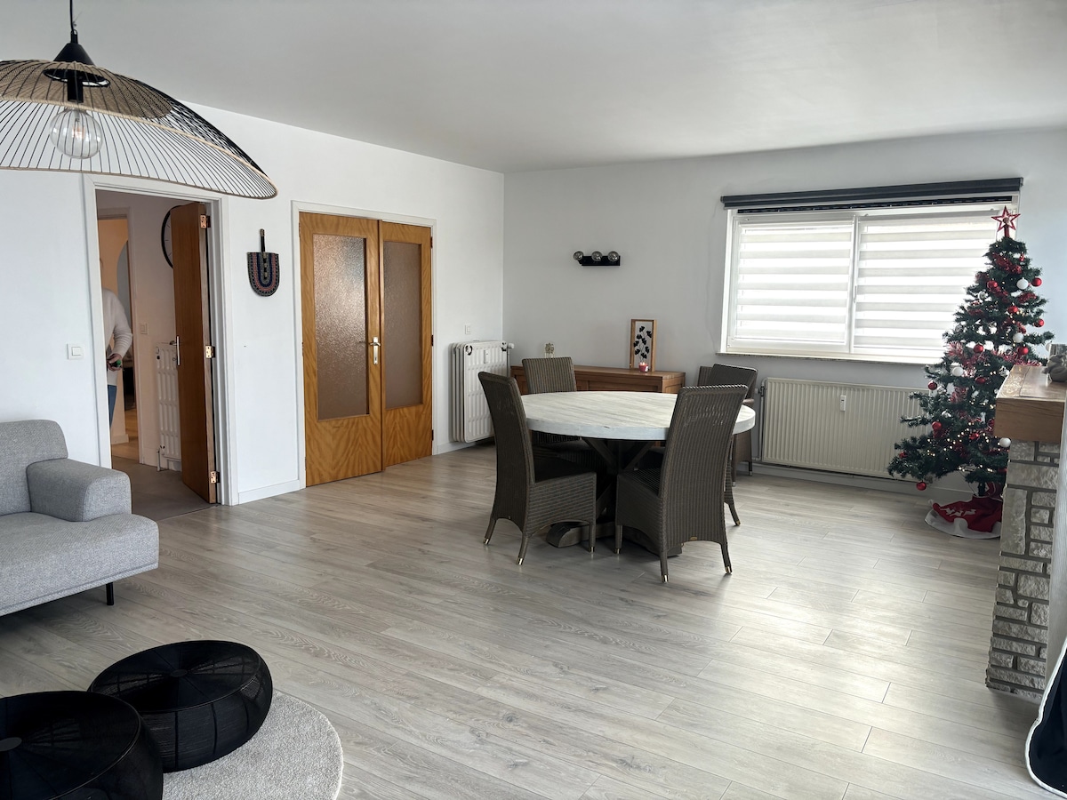 Dalam suasana hijau, di tengah-tengah Belgium, berhampiran dengan semua lebuh raya, sebahagian daripada rumah 70-an kami telah ditukar menjadi studio dengan semua kemudahan moden dan keselesaan untuk menampung 2 orang dewasa dan bayi / kanak-kanak: tv, internet berkelajuan tinggi/Netflix, katil saiz king, mesin basuh/ pengering, persalinan WC, pancuran mandi berjalan masuk, dapur kecil yang lengkap... Sepenuhnya secara peribadi (pintu masuk, tempat letak kereta, taman, teres), tanpa vis-a-vis privasi anda akan dihormati.