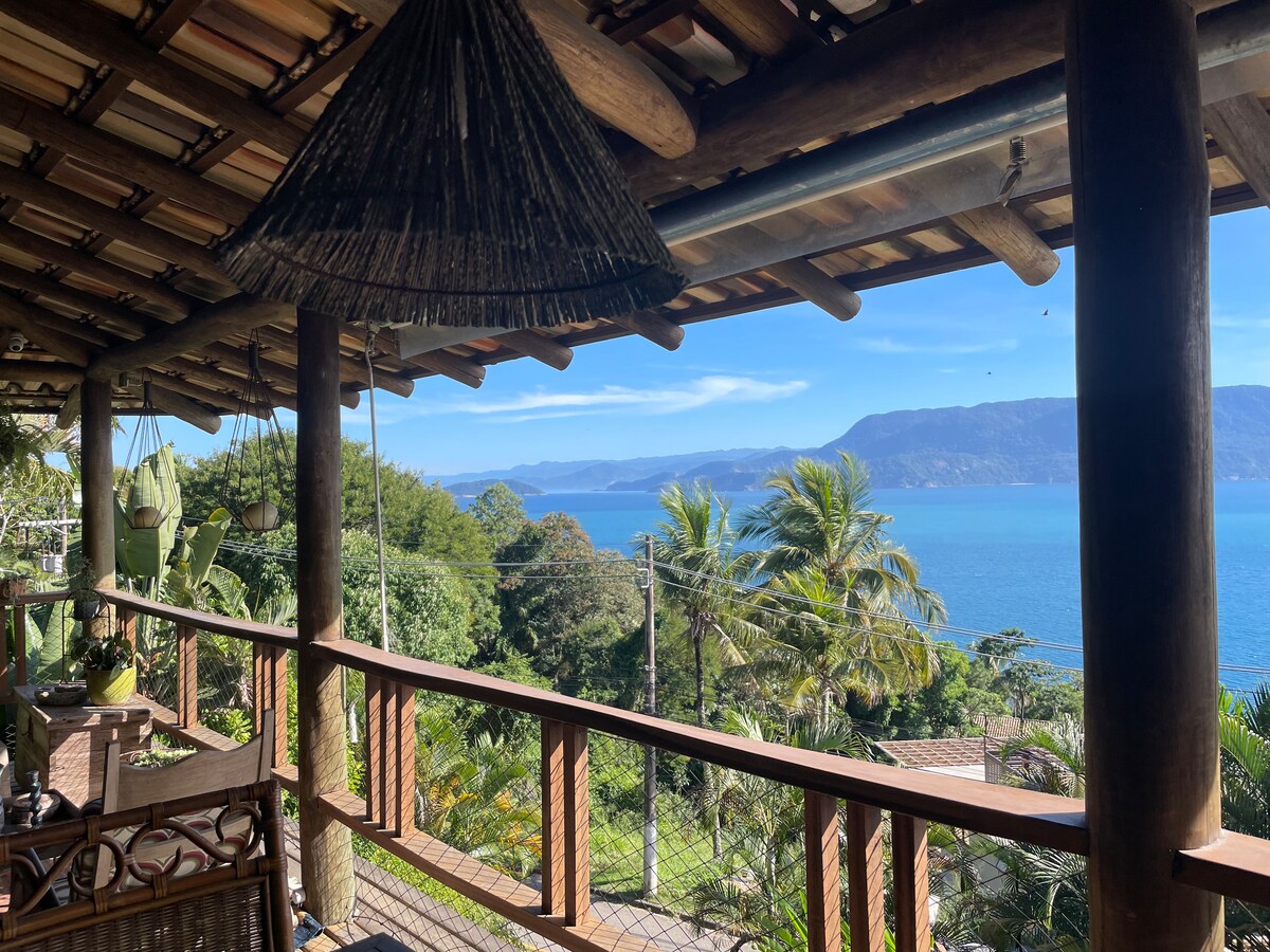 Uma casa com 5 suítes onde cada cantinho foi criado com muito estilo e carinho. O mar visto de qualquer ponto da casa traz paz e relaxamento e com sorte poderá ver baleias em sua estadia. Uma piscina abraçando uma pedra e uma cascata é mais um atrativo desta casa única!