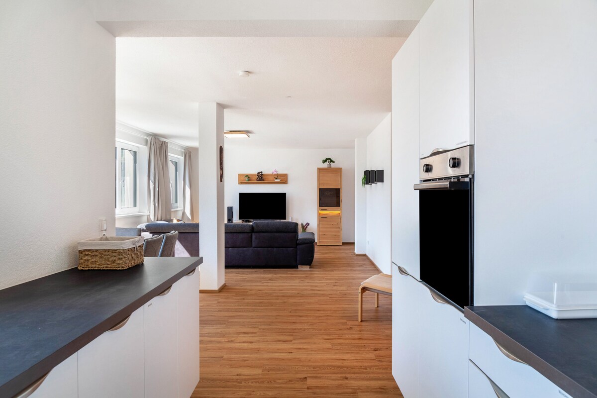 Very centrally located in the middle of many sights. Sensational panoramic terrace!!! Travel time to the next ski/hiking area: 5 min. Great bus connections right next to the building; ski/equipment storage possible right next to the car park. Great equipment with high-end kitchen incl. steamer, induction, coffee machine and dishwasher. TV, washing machine and dryer are also available in the flat. This accommodation gives you access to the region's guest card!