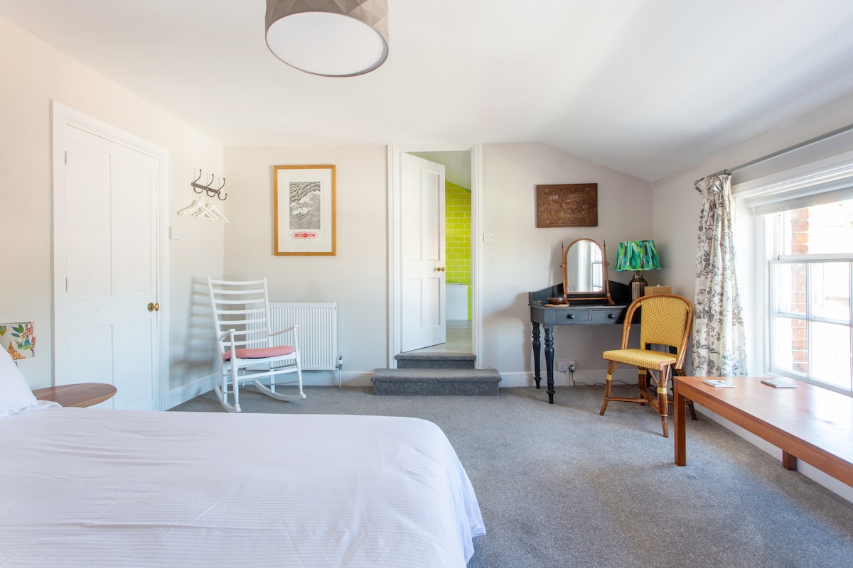 - Apartmen bilik tidur 2 raja tingkat dua yang luas dan terang di rumah bandar Georgia tersenarai Gred 2 - 2 bilik mandi besar, bilik mandi & pancuran mandi - 4 orang dewasa - Dapur kecil yang serba lengkap - Perabot moden pertengahan pusat Denmark/Norway - Untuk tetamu yang lebih muda, perabot bertema dino, buku/permainan - Tempat duduk halaman, lubang api - Basikal/motosikal selamat - Heart of Bridport, berhampiran tempat rehat/kedai/pasar jalanan - Pantai West Bay 1.2 batu, melalui laluan luar jalan; 1 batu SW Coast Path - Tiada yuran pembersihan - Diskaun 3+ malam