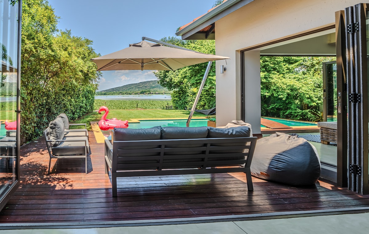 Suasana tenang dengan pemandangan menakjubkan ke atas gunung. Terletak kira-kira 70km dari Johannesburg dan Pretoria. 100km dari Sun City, 130km dari Pilanes Berg dan 40km dari Lapangan Terbang Lanseria. Kawasan ini menawarkan pusat membeli-belah, tempat perlindungan haiwan, kereta kabel, restoran, set filem, dll. Kami berada di estet alam semula jadi dengan haiwan perayauan percuma & fauna dan flora yang dijangka di estet sedemikian. Tiada pelawat tambahan atau hari dibenarkan. Kemungkinan bunyi bising dari resort, padang golf dan aktiviti bangunan.