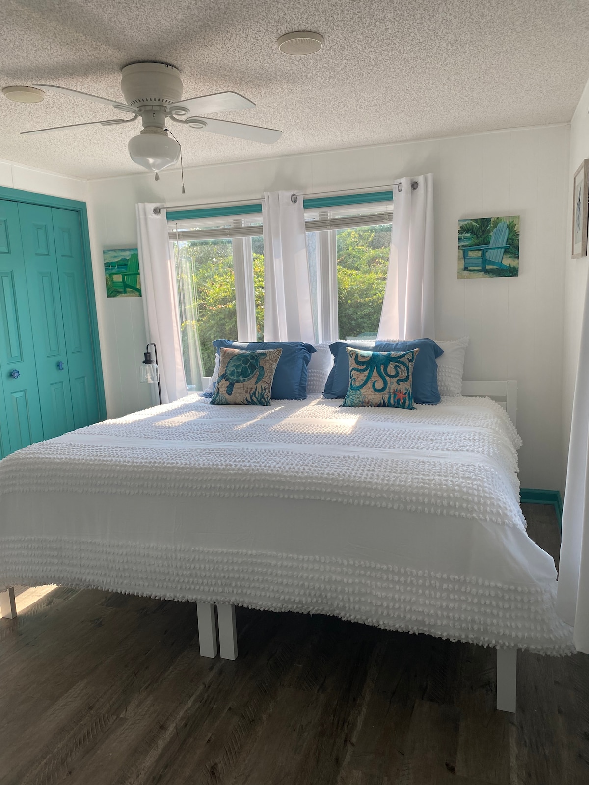 This coastal cottage located in beautiful Cape Carteret sits in a quaint waterfront neighborhood just a short distance to Emerald Isle beaches, local dining and entertainment. Bring your boat, jet skis, bikes or golf cart—there’s plenty of room in the driveway! All modern amenities are offered, including: -Paved parking -Porch with built-in furniture -Newly renovated kitchen stocked with cookware -Washer and Dryer -Dishwasher -Fast Wi-Fi -AppleTVs with YouTube TV