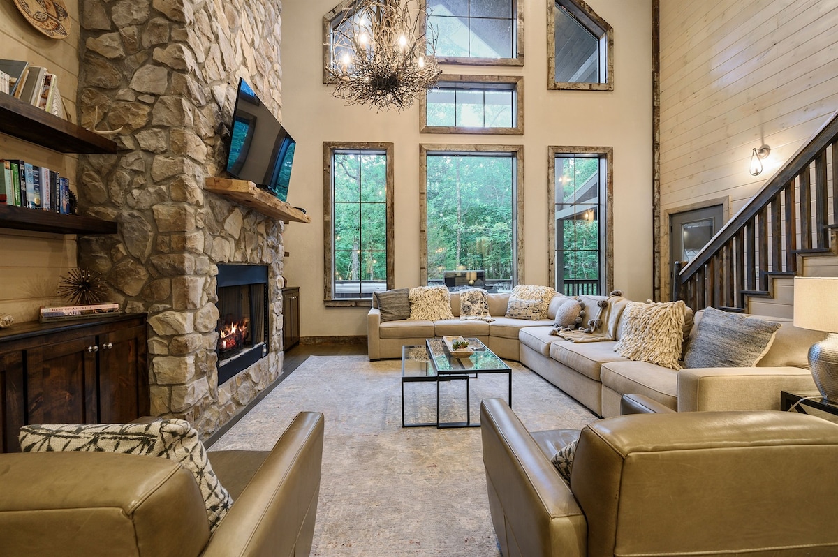 Luxe Cabin for 24 w/ Pool & Game Room Secluded
