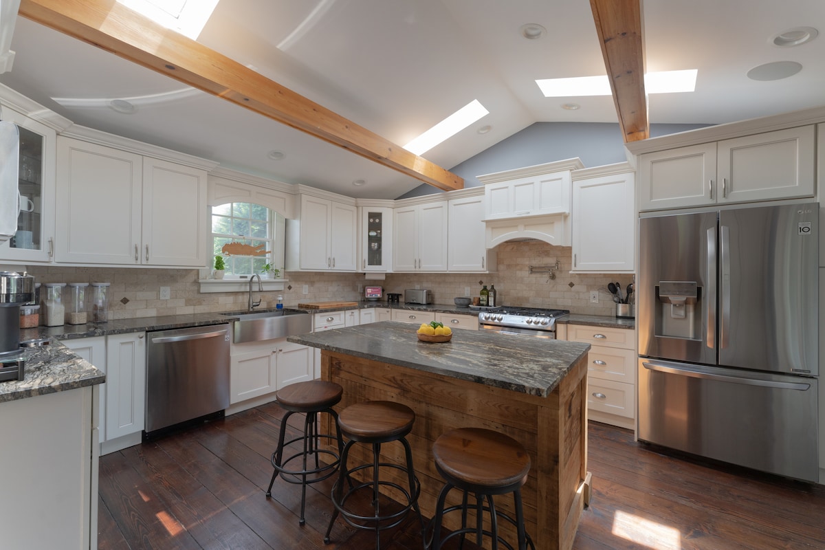 Terletak di Hampton Bays-pusat The Hamptons dikelilingi oleh air! Berhampiran dengan pantai, restoran tepi air, kilang wain, golf & tempat perkahwinan. Pelan lantai terbuka dengan gaya moden. 4 bilik tidur, 2 bilik mandi penuh, dapur makan di dalam, ruang tamu yang luas dan kawasan rekreasi/ foosball aras bawah. Nikmati kemudahan termasuk TV/peralatan pintar, Pengecas EV, 2 pendiangan, wifi 1GB, dek besar dengan tali lites, BBQ, lubang api, & pancuran mandi luar. Sesuai untuk keluarga, pasangan, rakan sekerja dan rakan!