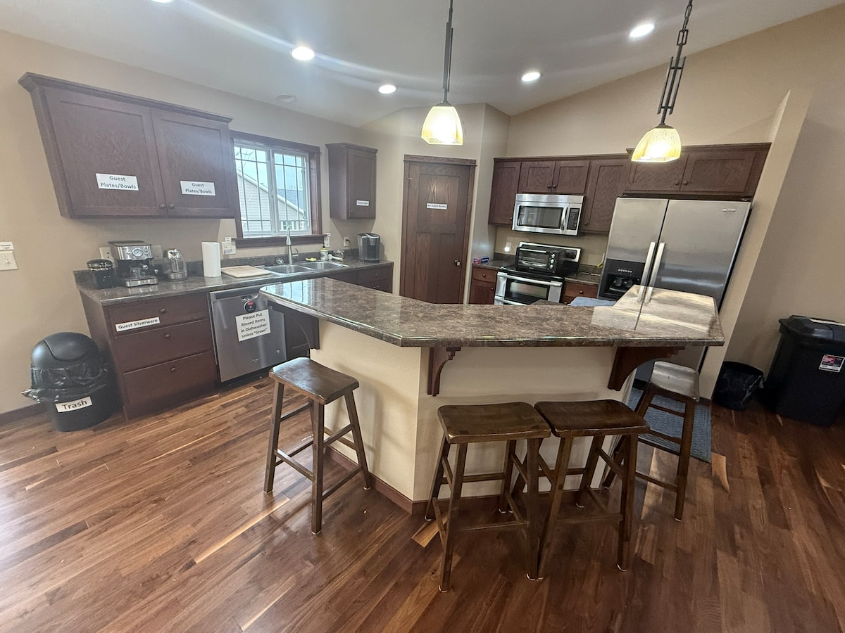 Sesuai untuk kumpulan atau keluarga! Rumah ini terletak betul-betul bersebelahan dengan kampus SDSU. Jarak berjalan kaki yang mudah ke stadium bola sepak! Amenties: Dapur besar dengan banyak tempat duduk untuk berkumpul. Disediakan sepenuhnya untuk penyediaan makanan dan memasak. WiFi percuma. Roku TV dengan mod tetamu. Lokasi: Terletak di tengah-tengah Brookings betul-betul di 6th St. Ia mudah untuk berjalan kaki ke Brookings Aquatic Center, Hillcrest Park, di mana saja di kampus SDSU, McCory Gardens, dan banyak restoran & tempat makanan segera.