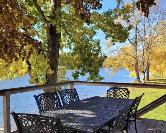 Kabin tepi sungai yang baru diperbaiki ini, mempunyai gaya tersendiri. Ruang hiburan terbuka memanjang ke dek sepanjang 40 kaki. Banyak tingkap dan pintu membolehkan alam semula jadi masuk, melengkapkan permukaan kaunter tepi langsung tempatan di dapur. Pemandangan indah dilihat dari landskap yang subur, sungai dan gunung yang jauh, dari setiap bilik. Dapur menawarkan semua ammeniti, seperti mesin basuh pinggan mangkuk, peti sejuk gaya pintu perancis yang besar, dan satu tan simpanan bersama-sama dengan permukaan kaunter yang mencukupi.