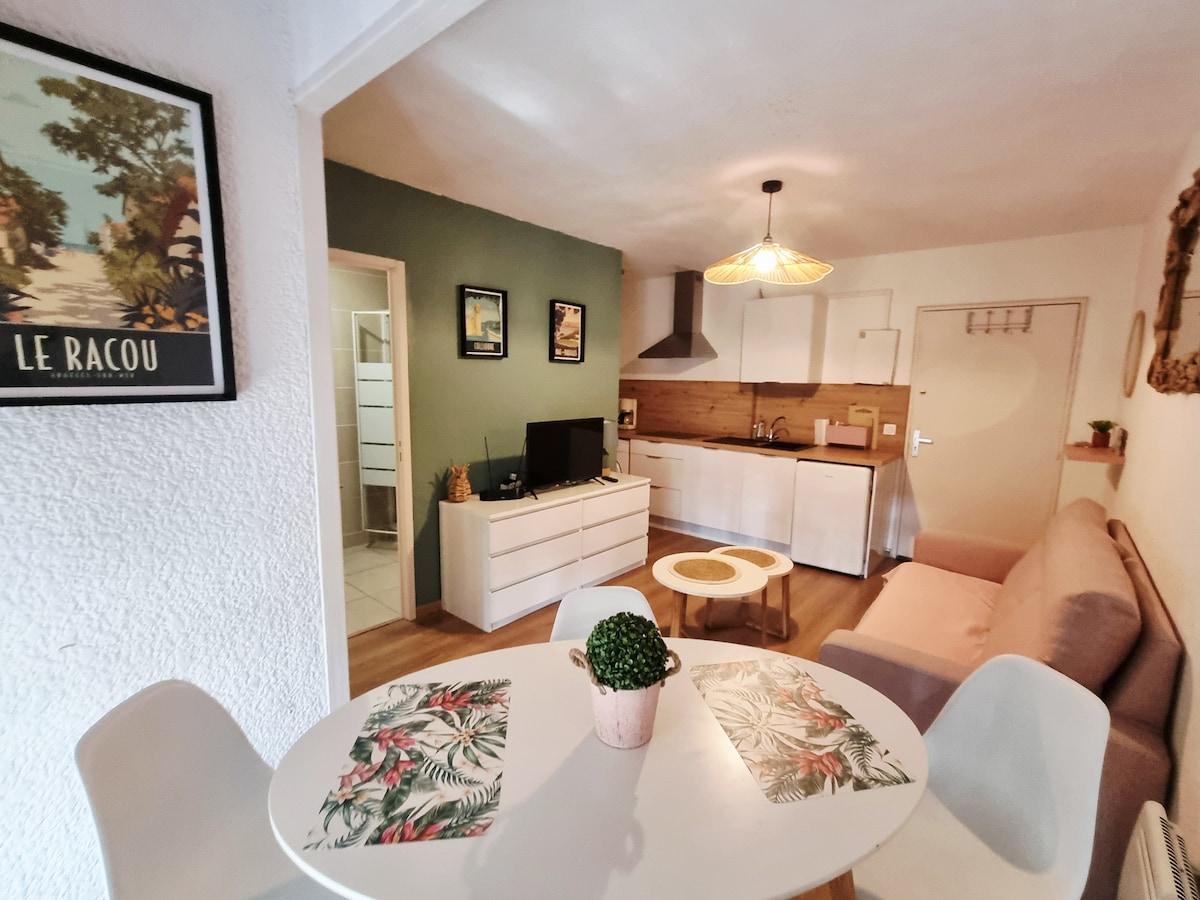 Datang dan nikmati ketenangan apartmen berhawa dingin dan bebas ini, aman di tengah-tengah kampung lama Argeles sur mer, dan diubahsuai sepenuhnya pada tahun 2022. Tenang tetapi berhampiran dengan pusat kampung, anda boleh menginap selama 2, atau 4 malam berkat sofa boleh tukar penginapan, dan menikmati teres yang menghadap sungai dan alam semula jadi. Akses ke pantai adalah 5 minit dengan kereta, 30 minit berjalan kaki, terdapat pengangkutan ulang-alik sepanjang tahun dan basikal elektrik, maklumat lanjut mengenai daqui-mobility .fr.