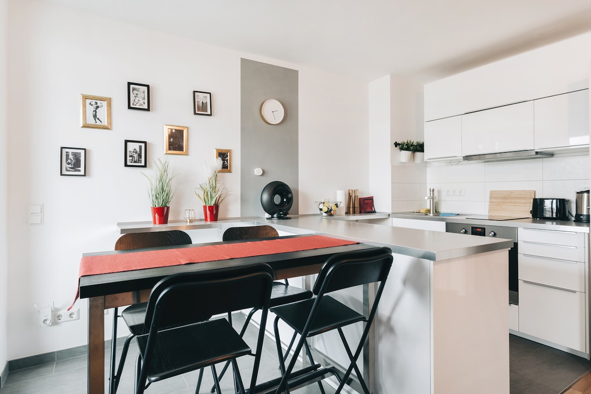 Selamat datang ke Apartmen UNiQE di pusat bandar Dresden! Apartmen 90 meter persegi berkualiti tinggi kami mempunyai semua yang anda perlukan untuk penginapan yang menyenangkan: → 1 katil bersaiz king & 2 katil bersaiz queen → Ruang kerja yang serba lengkap → Dapur serba lengkap → MESIN KOPI NESPRESSO TV → Pintar Loggia → santai → Terus di pusat Dresden