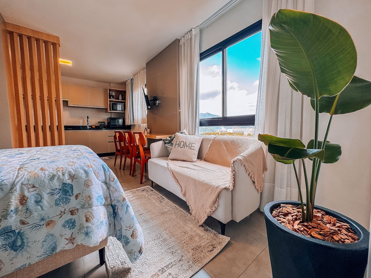 Lounge Apartment, located in Brava Beach and 10 minutes from Balneário Camboriú. The location is perfect. Only 5 blocks from Beach. Close all parties and restaurants. Condo with complete infra, Pool, Gym, Steam and 4 Barbecues. The apartment has Mountain-facing Jacuzzi with hydro and chromotherapy. Ideal for relaxing or take a romantic time. It has 58 'smart TV in the living room and 40' in the bedroom. Full kitchen. Machine washes and dries. You will love this place.