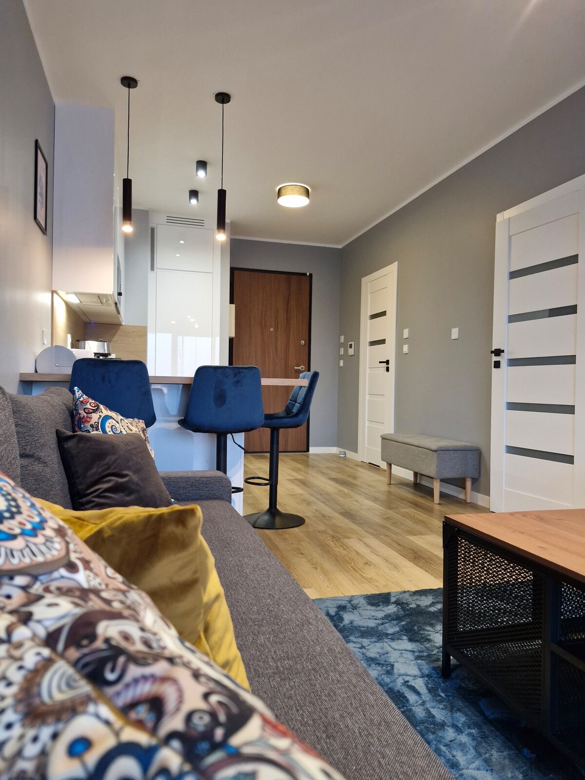 Suasana romantik dan tab mandi berdiri bebas yang direka oleh pereka adalah sorotan studio moden ini di Gdańsk. Ia tempat yang sempurna untuk pasangan yang mencari ketenangan dan gaya. Ruang ini menggabungkan bilik tidur dan ruang tamu dalam reka bentuk yang minimalis dan berfungsi. Di tengah-tengah Gdańsk, anda akan menemui keselesaan, ketenangan dan sentuhan kemewahan—sesuai untuk percutian romantik atau percutian bandar. Kemudahan di tapak termasuk gimnasium, sauna dan teres atas bumbung.