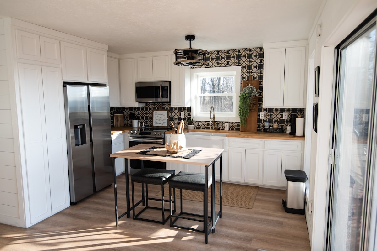 Kabin moden yang diubahsuai terpencil dengan pemandangan indah! Bersempadan dengan Buffalo River, penginapan ini sesuai untuk berakit, berkanu, berkayak, mendaki, menunggang kuda, denai, berbasikal dan mendaki, mengejar air terjun, memerhati burung, mencari matahari terbenam, menatap bintang, atau sebarang pengembaraan lain yang anda boleh temui! Anda akan rasa seperti gunung ini milik anda apabila anda bangun & berjalan keluar untuk menikmati kopi di anjung. Lokasi sempurna untuk bekerja dari jauh. Wifi hebat! Pemandangan memastikan anda benar-benar berasa seperti bercuti!
