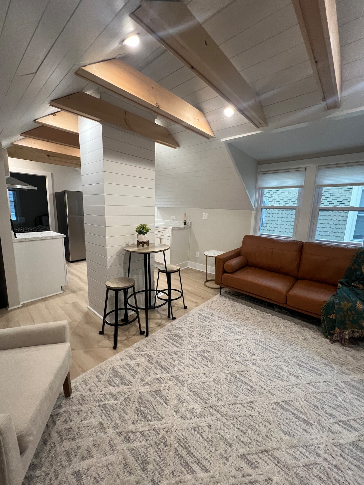 Jika penyenaraian ini tidak tersedia sila lihat penyenaraian saya yang lain Loteng tingkat 1 ini menampilkan dapur konsep terbuka & ruang tamu dengan dapur, peti sejuk & ketuhar gelombang mikro. Sofa tidur queen & TV pintar 46"berada di ruang tamu. Bilik tidur mempunyai katil king, meja solek & kerusi malas. Mesin basuh & pengering boleh didapati di bilik mandi bersama-sama dengan tab jakuzi rendaman. Pecahan mini A/C membantu menyejukkan ruang. This is a mix use property with periment tenants as well as other guest. Bunyi bising biasanya rendah
