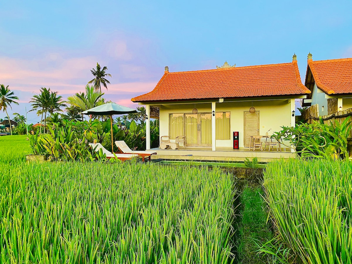 Penginapan unik tinggal bersama orang Bali di kampung. Kabin berdiri sendiri terletak berhampiran rumah Bali dengan pemandangan lembah Alam semula jadi menghadap matahari terbit. Bersantai di tempat percutian yang unik dan tenang ini.
