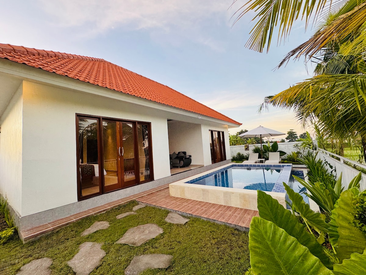 Sidemen villa pondok yang menakjubkan Tenang , Selesa .