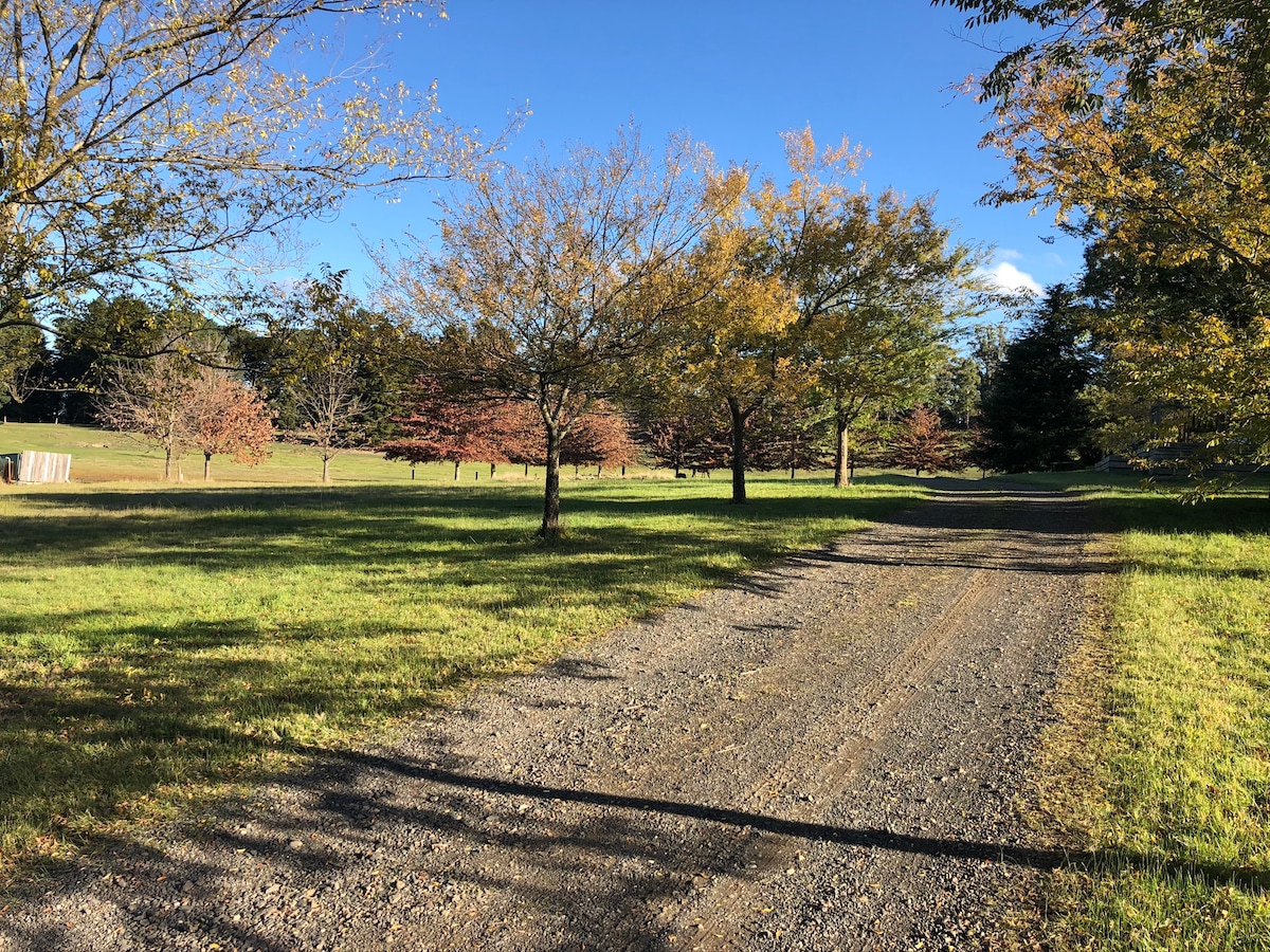 Rasa ingin bercuti? Bersantai & bersantai di penginapan dalaman kami yang serba lengkap, menikmati pemandangan panorama Mt Macedon. Tidur di katil poster empat saiz king yang mewah. Anda akan mempunyai pintu masuk, bilik mandi & dapur kecil yang berasingan dengan kemudahan moden seperti mesin kopi, ketuhar gelombang mikro & ketuhar. Serta air bertapis, stereo Bluetooth, TV, Netflix, DVD, WiFi, permainan & buku. Taman anda sendiri berpagar sepenuhnya, spa berkongsi, mesin basuh luaran berkongsi, mesin pengering & meja makan luar yang menyamar.