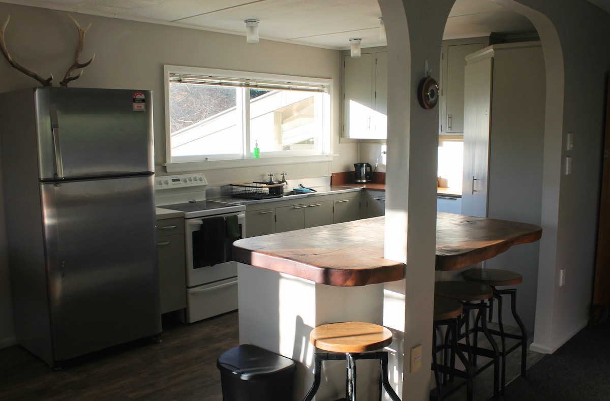 Nikmati apartmen serba lengkap ini (50㎡ + dek) dengan pemandangan Tasik Tekapo dan pergunungan di sekeliling yang menakjubkan. Sesuai untuk pasangan, ia menampilkan bilik tidur dengan katil King New Zealand (167cm x 203cm) yang berasingan daripada dapur dan ruang makan terbuka. Ruang ini sesuai untuk dua orang, tetapi kami sedia menginapkan tetamu ketiga menggunakan katil sofa di ruang tamu. Hanya 5 minit berjalan kaki dari Gereja Good Shepherd dan 10 minit berjalan kaki ke pusat kampung. Tempat letak kereta percuma untuk tetamu.