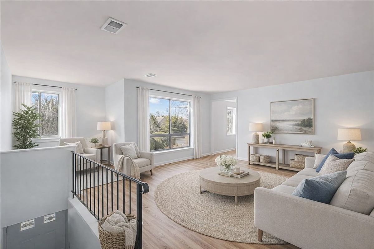 Selamat datang ke Chill Pad Deluxe yang dihoskan oleh Brandon & Hannah, yang terletak di kejiranan Cherry Hill yang menawan, New Jersey. Penginapan yang menakjubkan ini menawarkan percutian yang selesa dan mudah untuk penginapan anda di kawasan ini. Semasa anda melangkah masuk, anda akan disambut oleh bahagian dalaman berperabot yang direka dengan mengutamakan keselesaan anda. Ruang tamu yang luas menampilkan tempat duduk mewah dan tiga bilik tidur yang menarik, membolehkan anda berehat dan bersantai selepas seharian meneroka atau bekerja di bandar.
