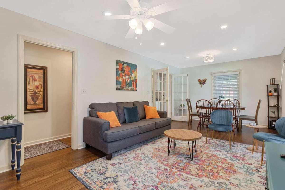 Welcome to our charming 3-bedroom, 1-bathroom ranch home near I-85/40, offering comfort and convenience. Inside, you'll find a cozy dining area with ample natural light, a fully equipped kitchen, an inviting den with a fireplace and 65-inch TV, a spacious master bedroom, and an expansive backyard for outdoor entertainment. Located conveniently near I-85/40, it's an ideal base for exploring the area's attractions. Book your stay today for a delightful home away from home.