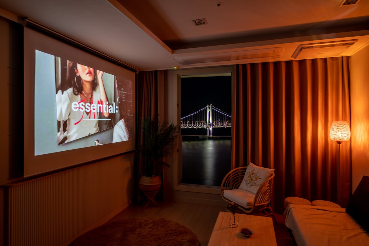 [Timohouse] #Pemandangan lautan tingkat tinggi #Pemandangan hadapan Jambatan Gwangan #Pertunjukan dron #Pemisahan bilik tidur #Netflix #Projektor sinar