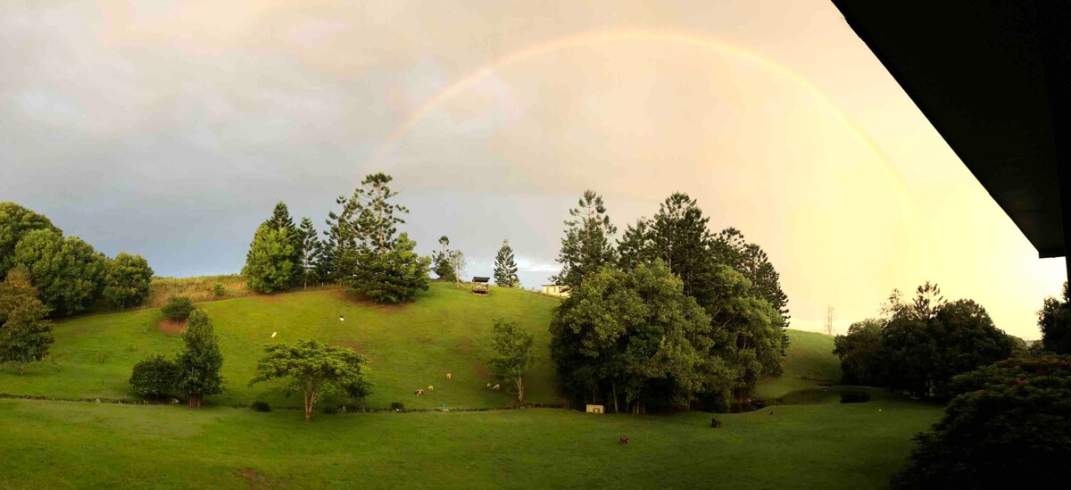 We are in the heart of the Tweed. Our bungalow is a perfect getaway for you to explore the beautiful Tweed Valley and Byron Shires, including Byron Bay, Nimbin and the Tweed Coast. Uki, Murrwillumbah,the Rail Trail and Tweed Gallery are close by as are award winning restaurants Tweed River House and Potager. Enjoy the spectacular views from the deck, relaxing on your private patio, wandering through the orchard or a swim Please note: our property is not suitable for children or pets.