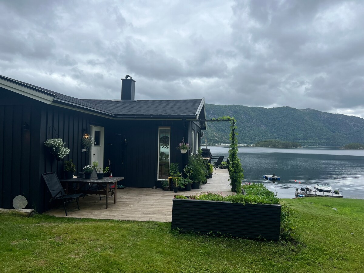 Apartmen di tepi fjord dengan akses kepada kanu.