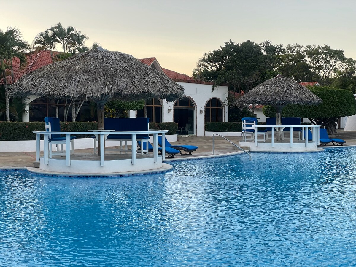 Kondominium 1 bilik tidur yang cantik dan cerah terletak dalam komuniti berpagar tepi pantai yang mewah, Infiniti Blu. Kompleks ini terletak dalam jarak berjalan kaki dari semua restoran, bar dan kedai di Sosúa, tetapi dengan suasana syurga tropika. Unit ini mempunyai AC di ruang tamu dan bilik tidur. Katil kingsize. 50" SmartTV, kabel, dan wifi. Air botol tersedia atas permintaan. Siling tinggi dan hiasan cerah untuk suasana pantai yang lapang. Balkoni dengan tempat duduk luar dan pemandangan taman. Elektrik adalah tambahan.