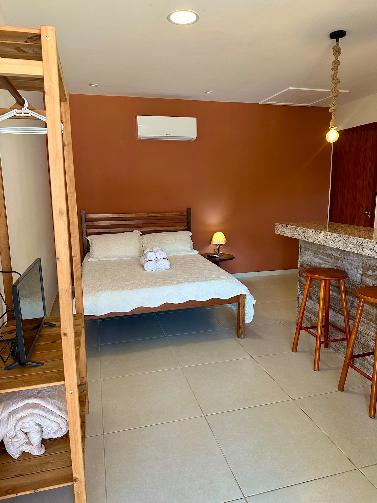 Bay Shore Loft terletak hanya beberapa langkah dari pasir pantai Foguete. Kami datang untuk berinovasi konsep loteng dengan dapur penuh dengan bar mini, dapur memasak, pengadun, pembuat kopi, risalah udara dengan kaunter marmar, bilik mandi penuh, TV pintar 32 inci dengan akses SKY, Wi-Fi, seterika... Bilik mandi dengan pancuran mandi elektronik, pancuran mandi bersih, tong sampah automatik dan kemudahan dari Boticário
