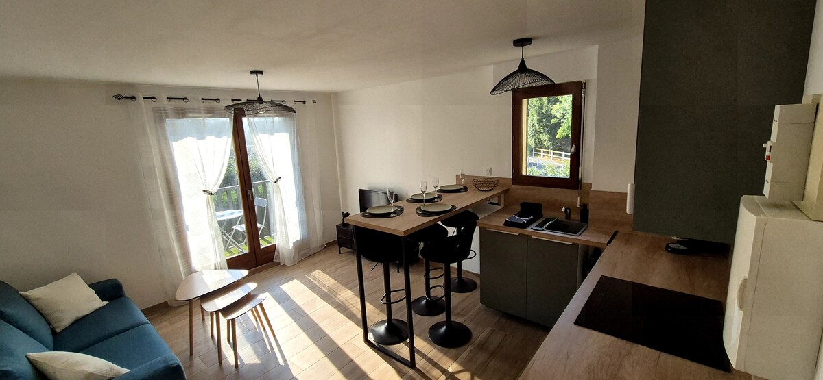 Bersantai di ruang yang tenang dan bergaya ini dengan pemandangan terbuka (orientasi berganda). Balkoni kecil untuk sarapan dan wifi untuk menonton rancangan kegemarannya. Sesuai untuk pasangan, bersendirian atau dengan anak kecil (katil bayi lipat tersedia). Anda akan mempunyai dapur lengkap, mesin basuh, cadar, tuala... Terletak di kediaman yang tenang dan selamat dengan ruang letak kenderaan anda sendiri. Pantai 10 minit berjalan kaki, Marais 5 minit. Nikmatilah!
