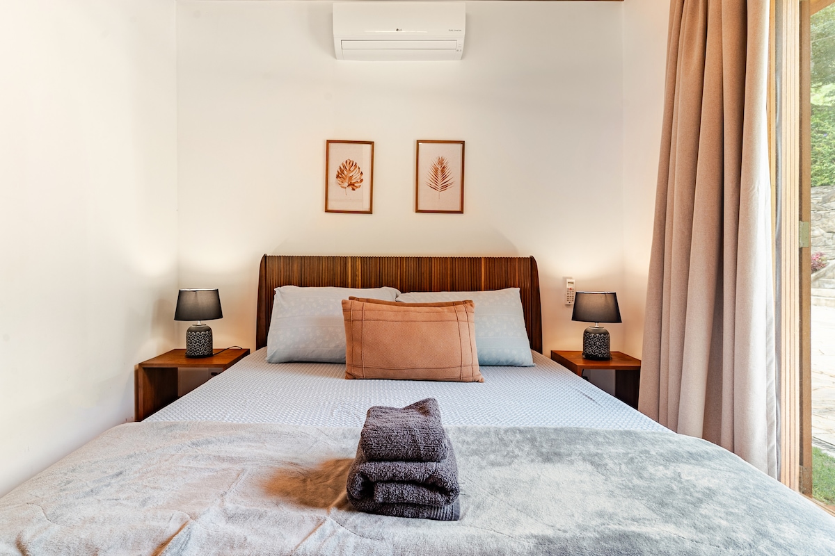 O bungalow do Bosque fica no meio da natureza a 1800 m de altitude com um deck para vista privilegiada à Pedra Redonda e a Pedra Partida, ícones de grande beleza em Monte Verde. Ao seu lado, temos um jardim particular que nos leva a uma trilha recheada de plantas e silêncio para ficar e meditar. Do lado oposto, há árvores frutíferas e um fire pit para se aquecer nas noites frias na montanha. A decoração dos ambientes é única, aconchegante e cheia de detalhes (com 80m2)